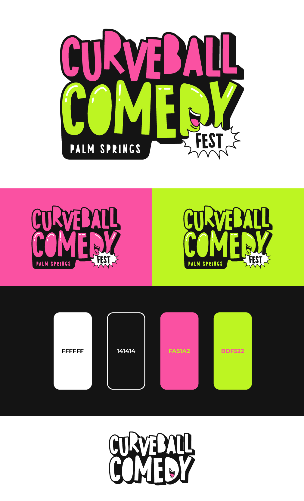 Curveball Comedy Fest is a comedy platform that celebrates LGBTQ+ voices through humor, performance, and community driven storytelling. The visual identity was designed to capture the bold, expressive, and unpredictable spirit of comedy while embracing the vibrant culture of the Pride community.